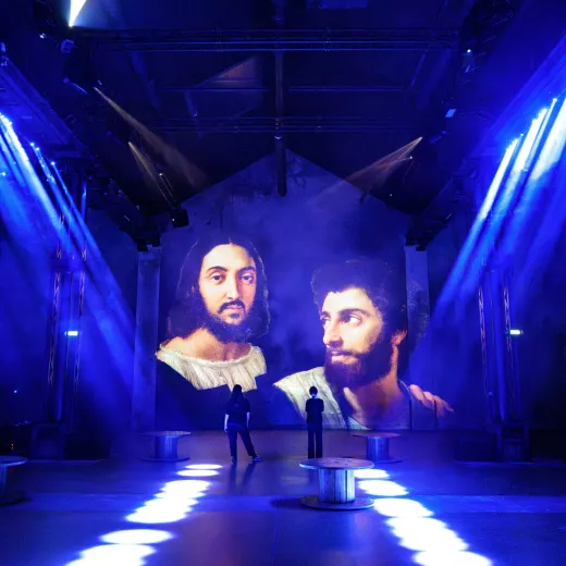 The Italian Renaissance as you've never seen it before! The Atelier des Lumières is revolutionizing the immersive experience with Renaissance: Da Vinci, Raphael, Michelangelo. Three visionary geniuses, three complementary worlds: Leonardo's scientific curiosity, Raphael's perfect harmony, Michelangelo's sculptural power. Immerse yourself in their masterpieces thanks to cutting-edge technology and a completely redesigned scenography: 3D modeling, digital twins, smoke effects, and lasers.