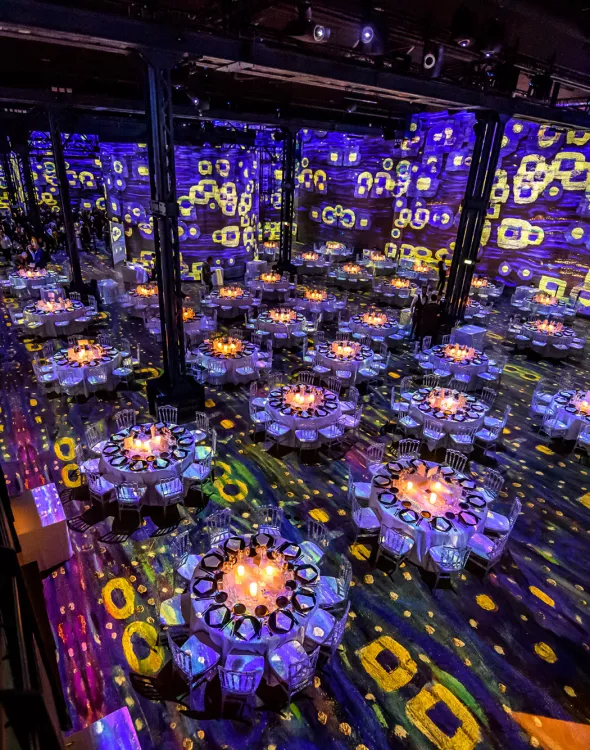 Grâce à un dispositif multimédia d’exception, 140 vidéoprojecteurs et une sonorisation spatialisée, l’Atelier des Lumières offre à vos convives une expérience à 360° unique à Paris.